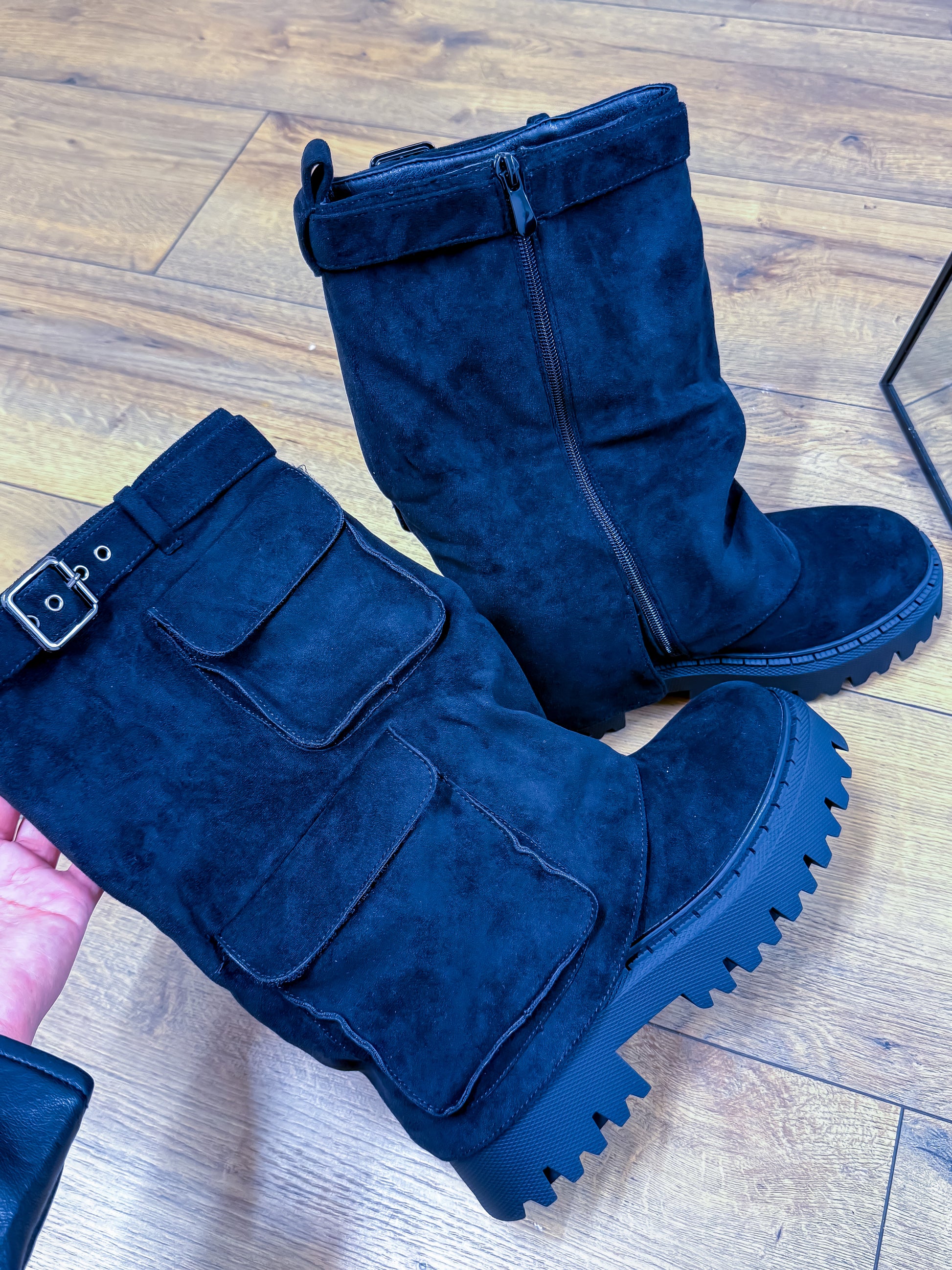 Adoptez un look urbain et tendance avec nos bottes cargo en daim noir. Ces bottes au style militaire revisité offrent un parfait mélange entre confort et caractère.
