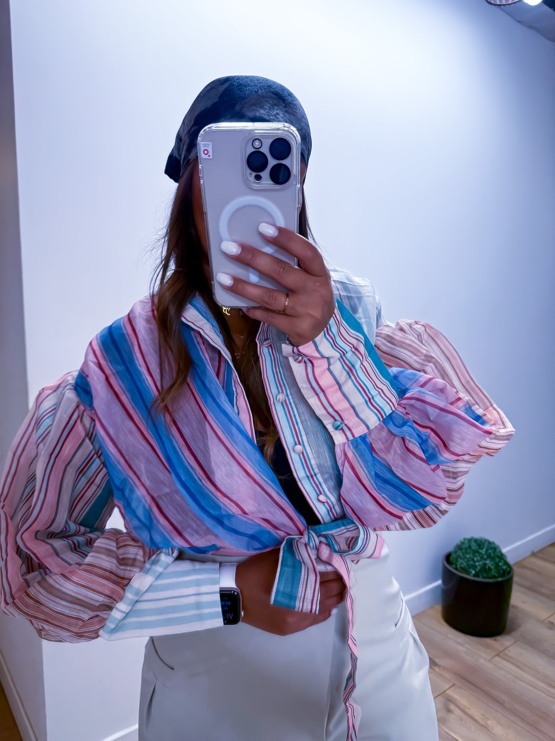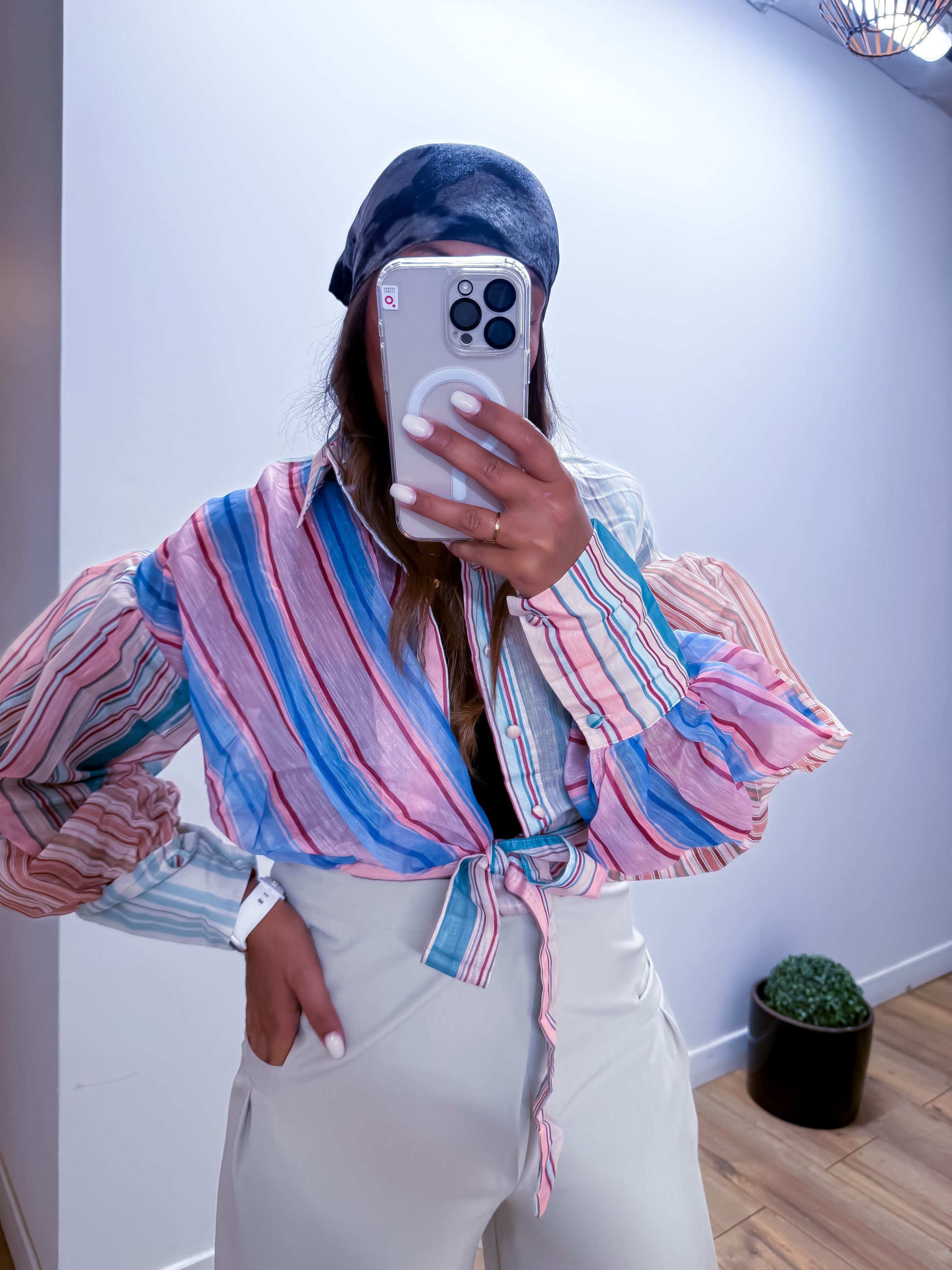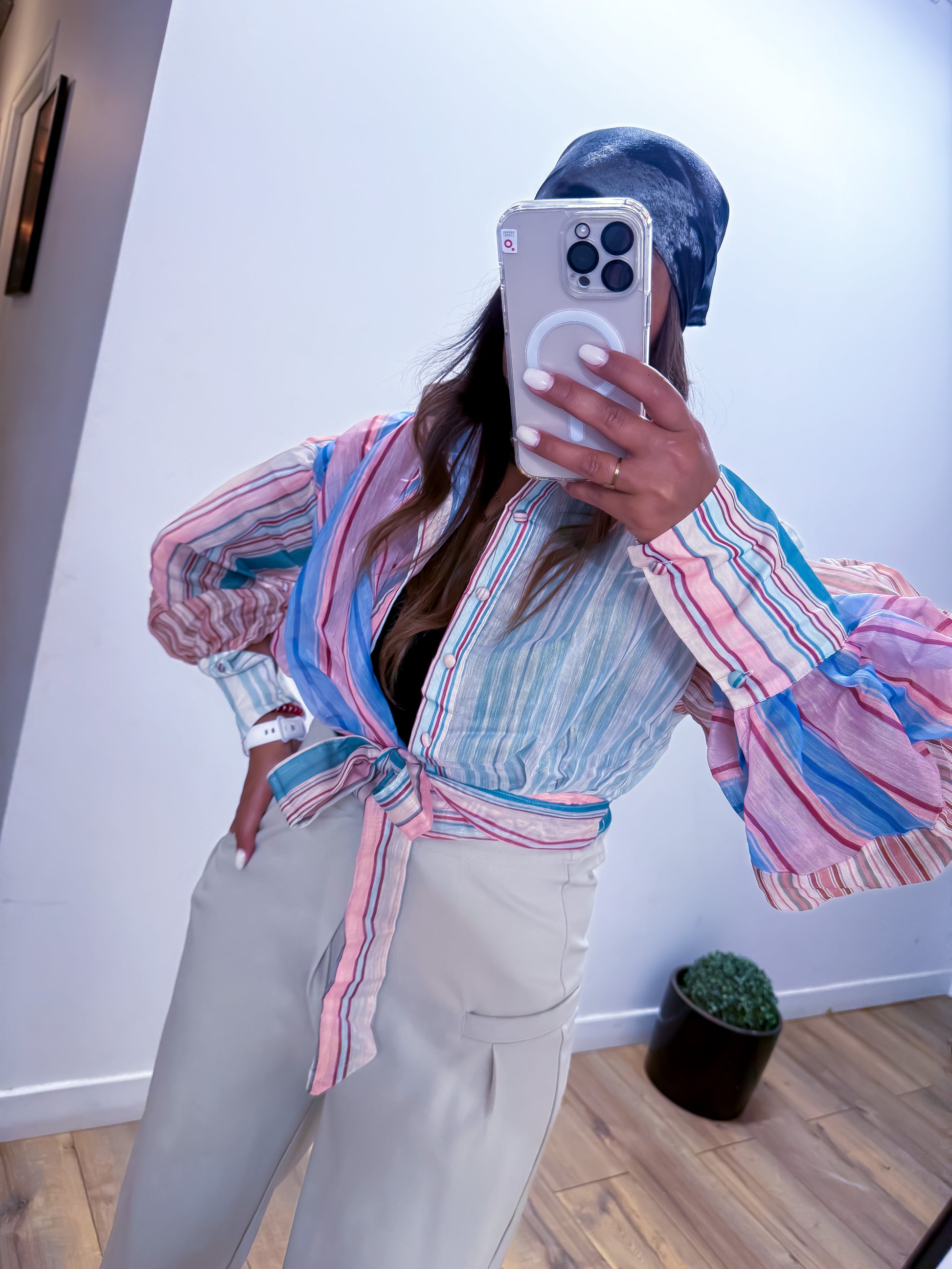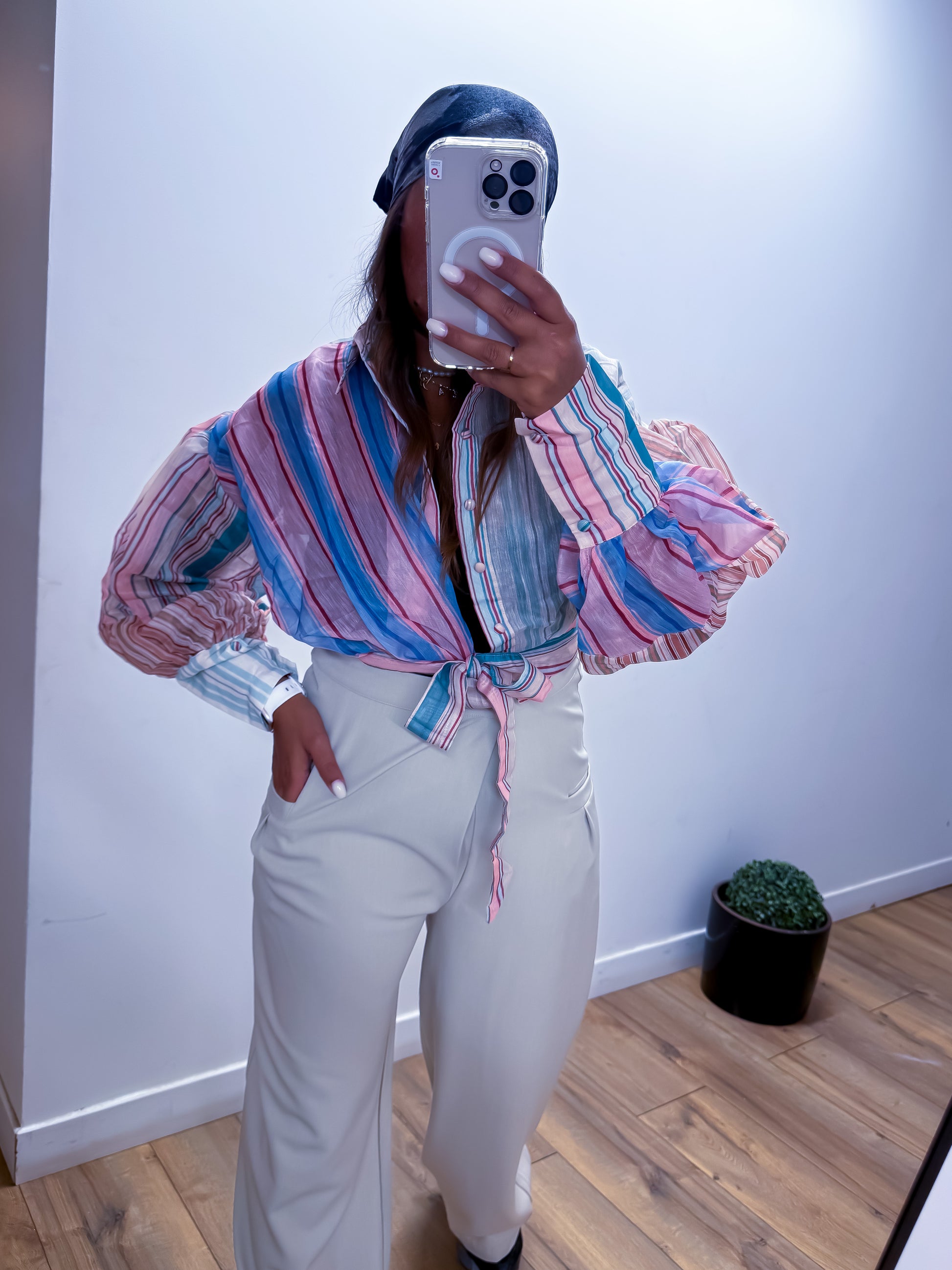Découvrez notre magnifique chemisier RAINB qui allie parfaitement élégance et modernité ! Cette pièce raffinée présente :
