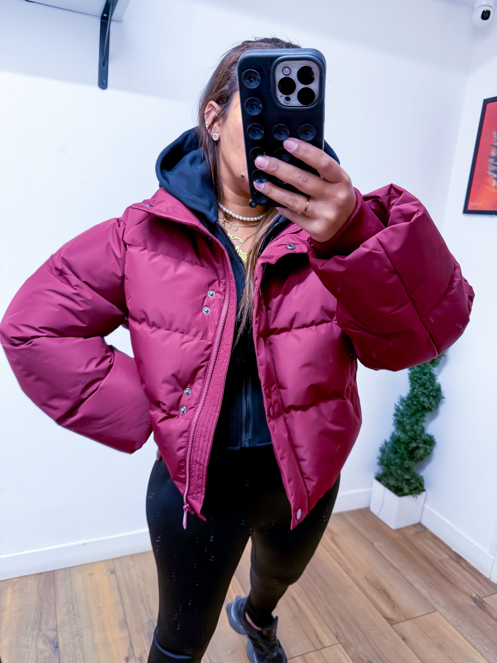 Cette doudoune duo est la définition même de la polyvalence hivernale. Portez la doudoune seule pour un look épuré et élégant lors des journées fraîches, ou ajoutez le gilet à capuche écru pour un maximum de chaleur et un style plus décontracté lors des grands froids. Le bordeaux profond apporte une touche de sophistication et de caractère à toutes vos tenues. La coupe oversize offre un confort absolu tout en restant ultra-féminine. Cette pièce innovante vous permet de passer facilement d'un look urbain chic à un style plus sportif en un clin d'œil. Parfait avec un jean, un legging ou un pantalon, cette doudoune modulable est l'investissement mode intelligent qui multiplie les possibilités de votre garde-robe d'hiver. Chaleur, style et praticité réunis dans une seule pièce exceptionnelle !