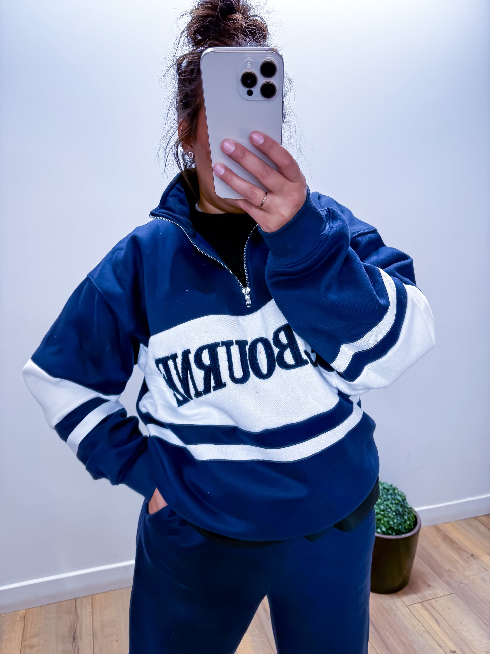 Adoptez le confort et le style avec cet ensemble sportswear premium bleu marine et blanc.