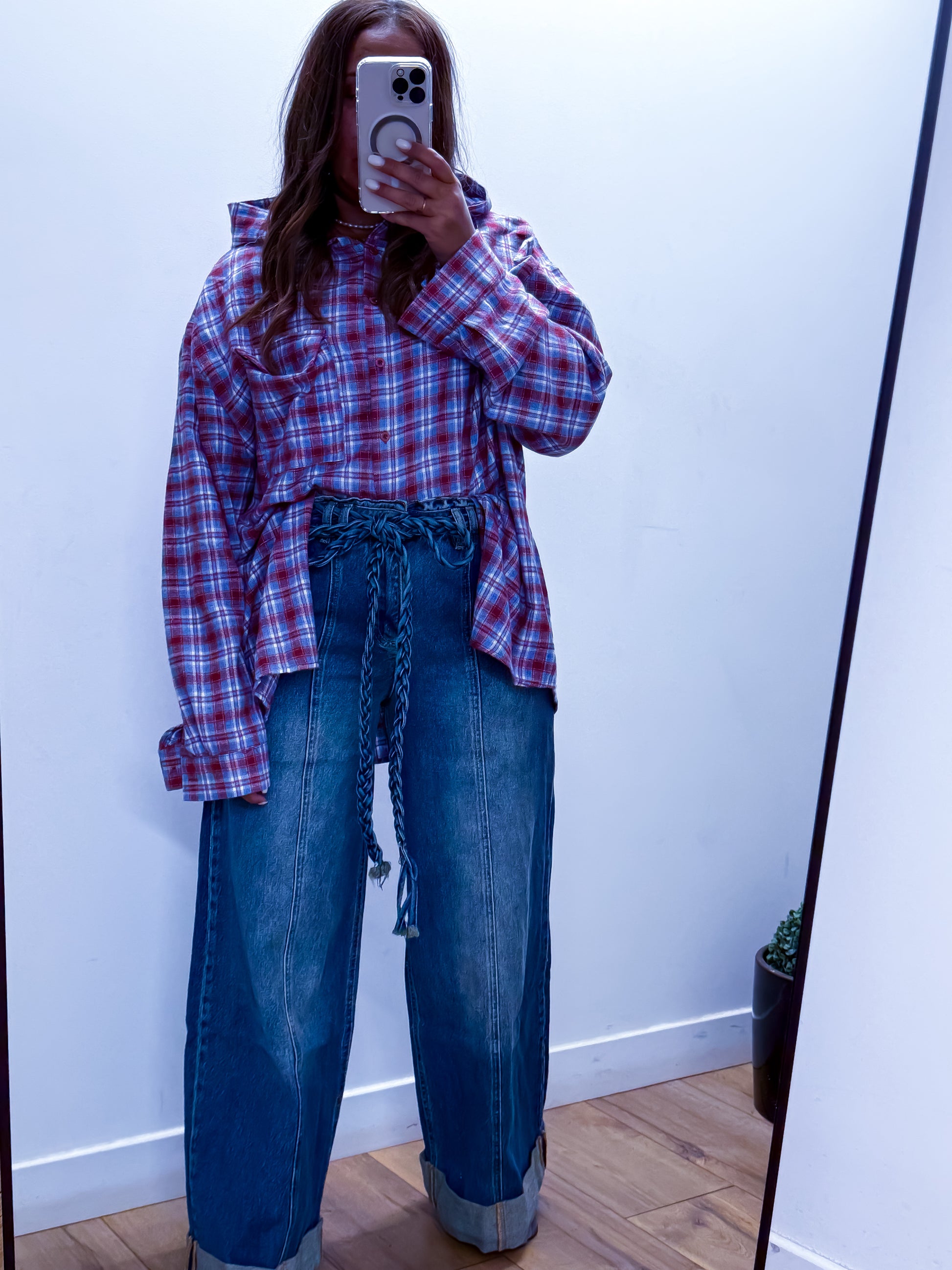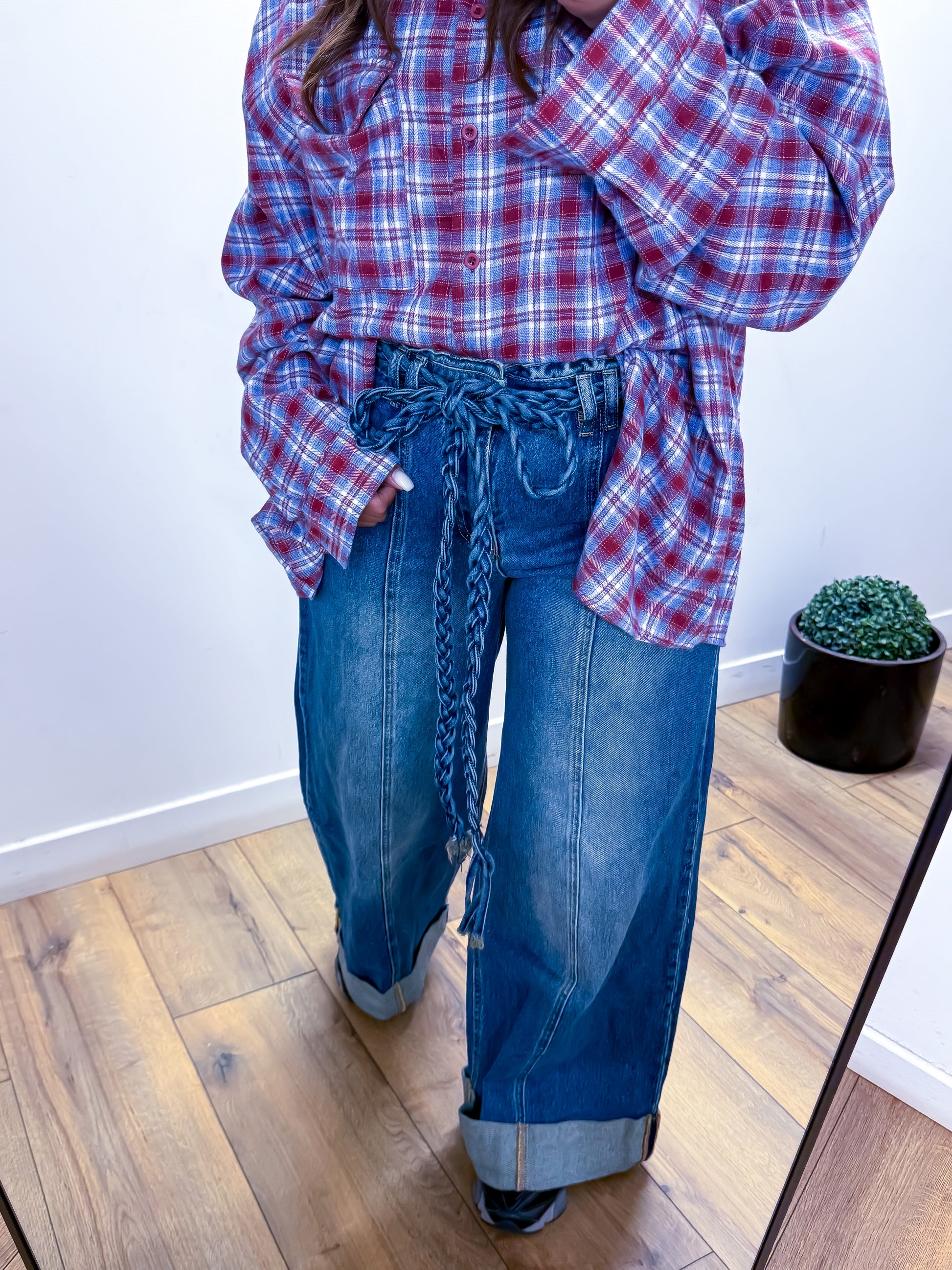 Ce jean polyvalent se marie parfaitement avec vos chemises, pulls ou t-shirts pour créer des looks variés. Sa ceinture tressée unique en fait une pièce statement qui ne passera pas inaperçue.