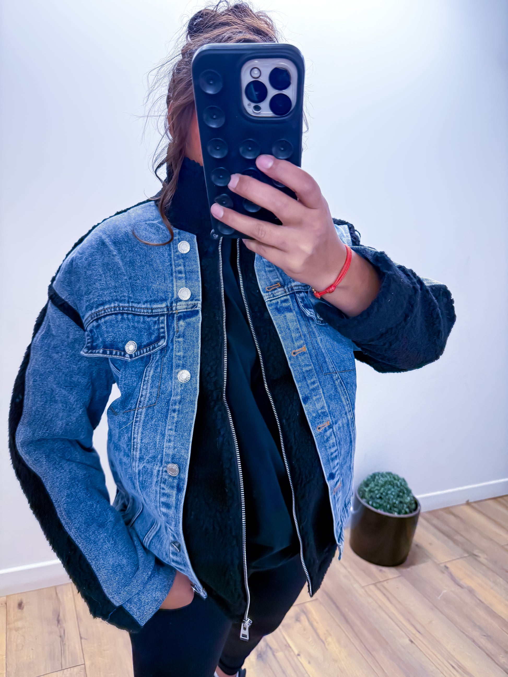 - Contraste parfait entre le denim vintage et la modernité de la polaire